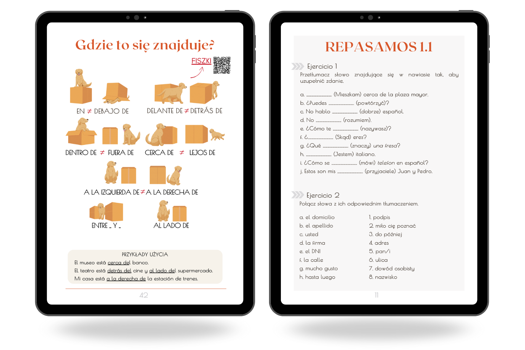 ⭐ Rozdziały powtórkowe “Repasamos”, w których znajdziesz 4 ćwiczenia powtórkowe po każdej lekcji zaprojektowane tak, abyś mógł skutecznie powtórzyć niezbędne słówka i zwroty bez żmudnych zadań ciągnących się przez wiele stron; do każdego zadania masz odpowiedzi, więc nie stresujesz się tym, że zostałeś/aś ze wszystkim sam/a.