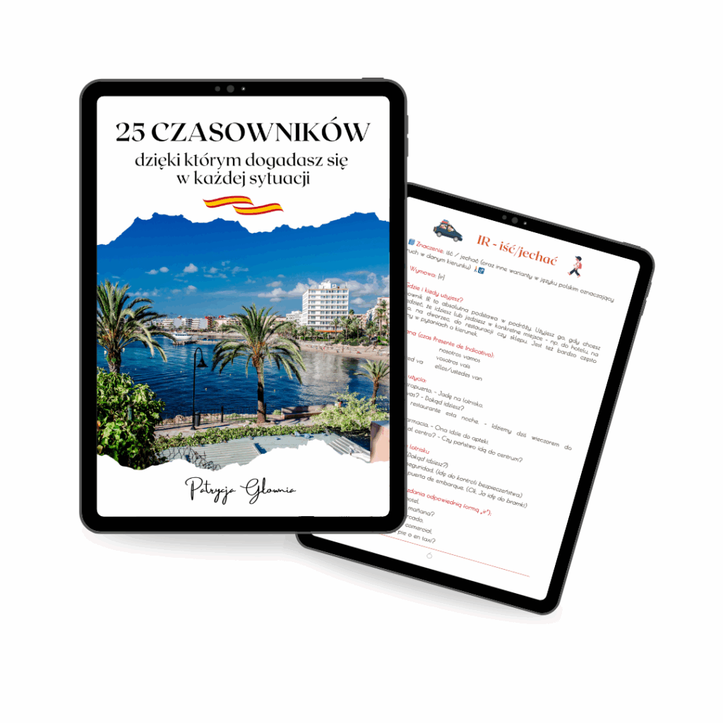 🎁 a dodatkowo znajdziesz tu powtórkę po każdych 5 czasownikach, minisłowniczek podróżny oraz quiz na koniec!